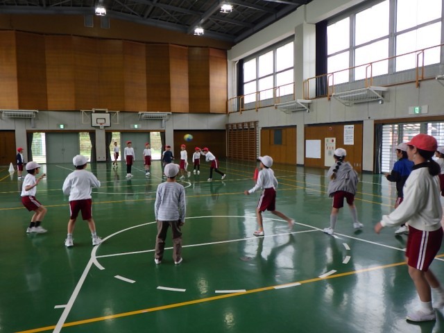 全校児童で王様ドッジをしました。上学年の子たちがとても上手に下の学年の子たちを導...
