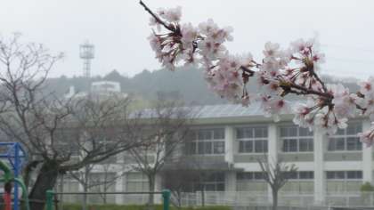 写真:校庭のサクラとセンダンの木