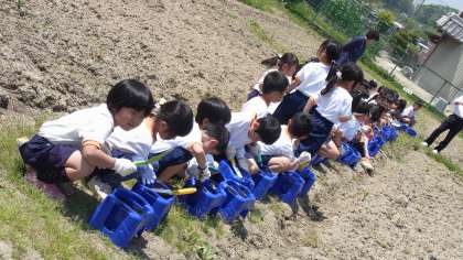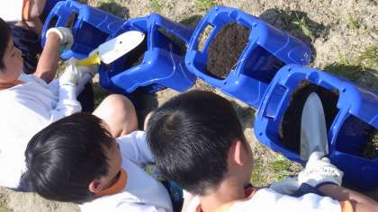 写真:アサガオを植える準備