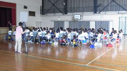 NTTDoCoMoの講師をお招きして、5年生児童と全校保護者を対象に実施しました。スマホやネットの基本知識から、トラブル事例の紹介、トラブルに巻き込まれないために、子どもや保護者が行うべき対策などを、分かりやすく説明していただきました。スマホにふれはじめるとき、持ちはじめるときに、きちんとした約束と対策をとっておくことは、子どもの将来に影響する大切なことだと実感しました。