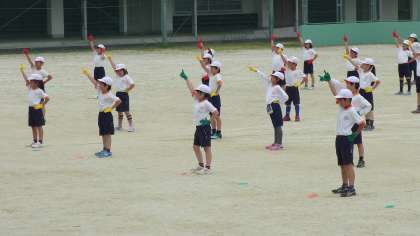 運動会では、3・4年生が元気いっぱいに、ノリノリダンスで旋風を巻き起こします。