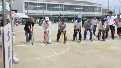 写真:地域種目「タガ回しリレー」