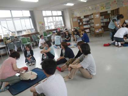 夏休みに開催されるプール開放に向けて、PTAの監視員の皆さんを対象として救急救命講習会が開催されました。皆さん、とても熱心に参加してみえました。