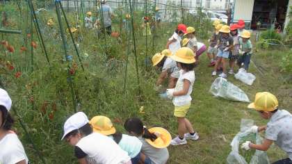 4月から、ナスやキュウリ、トマトなどの夏野菜を育ててきましたが、夏休みが終わり、次の栽培の準備を始めるころになりました。伸びきった草を片付けながら、次は何を育てようか考えました。となりの畑では、サツマイモが順調に生育しています。こちらも収穫が楽しみです。