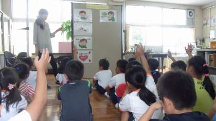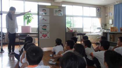 夏休みが終わり、身体測定の時期となりました。どれくらい大きくなったか、測定して確かめました。身体測定の前には、ミニ保健指導がありました。今回は、「ケガをしたとき自分でできる手当」について、勉強しました。