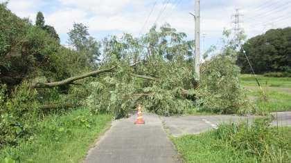 台風18号の通過にともない、田籾の通学路を倒木がふさいだという連絡が入りました。市役所の土木課に依頼して、翌日中には片付けが完了しました。強風の恐ろしさを改めて感じさせてくれる事件でした。