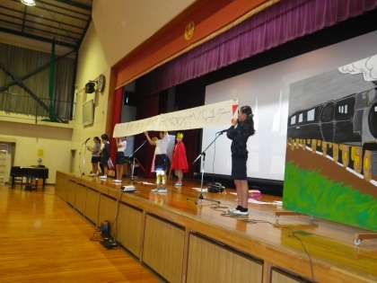 保健委員会の「睡眠列車に乗ってみよう」と題する劇では、早寝をすると、成長ホルモンの適正な分泌が促され、体も心も元気になること、でも、早寝をしないと成長ホルモンが正常に分泌されないことを、子どもたちに分かりやすく説明し、早寝早起きの大切さを伝えました。