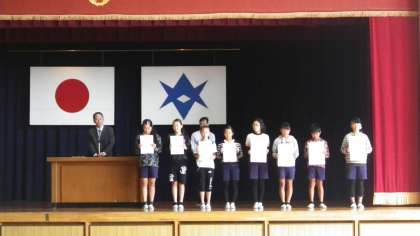 学期区切り式の後に表彰がありました。今回は表彰される子がたくさんいて、伊保小学校の子どもたちのがんばりを、改めて感じさせてくれました。