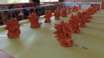 「たのシーサー すばらシーサー」というテーマで、粘土を使ってシーサーを作りました。それぞれが個性的なシーサーになりました。