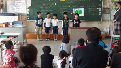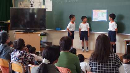 2年生は「野菜作りの発表会」をしました。生活科の学習で一生懸命取り組んできた野菜作りについて、野菜の特徴や栽培の苦労、美味しい食べ方の紹介など、みんなで体験してきたことを、おじいさんやおばあさん、お家の方の前で発表しました。