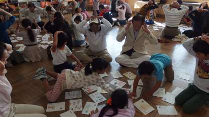 3年生は、「いぼいぼカルタ」を使ってカルタ取りをしながら、伊保の里の学習の発表をしました。「いぼいぼカルタ」は、3年生が総合的な学習の時間を使って行った郷土調べを、みんなでカルタにまとめたものです。みんなで楽しみながら、郷土の学習ができました。