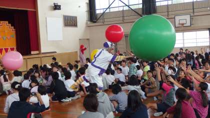 PTAのみなさまの企画により今年も観劇会を行いました。今年は「クラウン ファミリー プレジャーB」のみなさんによる、「コメディ・クラウン・サーカス」を観ました。ジャグリングや風船のショーなど、カラフルなクラウンたちが大あばれの、とても楽しいパフォーマンスでした。