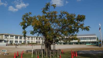 伊保小学校のシンボルとして、樹齢110年を越えたセンダンの木。今年も台風に耐え、実をつけました。これからも元気に生きてくれることを願っています。