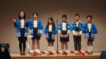 田籾町の伝統芸能「木遣り」は、神社が建てられたとき、御祝として演じられます。保見ふれあい祭りでは、「こまごと」を発表しました。節回しが大変難しいですが、練習を通して上達した姿をご覧いただけました。講師のみなさま、ご指導ありがとうございました。