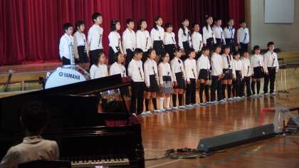 毎日笑顔で楽しい4年生。全員が真剣に取り組む中に、仲のよさが伝わってくる歌と演奏でした。