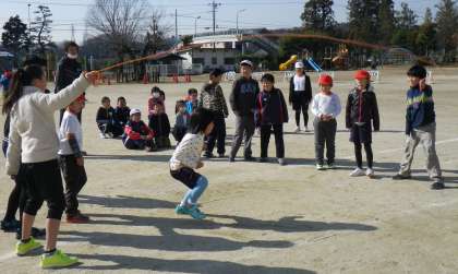 いままでフレンド班(縦割り異学年集団)で、長縄跳びの練習をしてきました。2月5日には、フレンド班対抗で跳ぶ回数を競う長縄跳び大会がありました。高学年の声かけで低学年の子が上手にとんでいくほほえましい場面をたくさん見かけました。