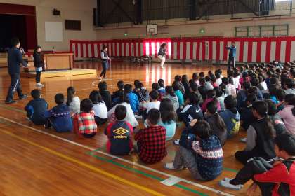 本年度最後の全校集会がありました。全校集会では、縄跳びの練習をがんばって、上達した子の表彰がありました。「縄跳びがんばりカード」で学年ごとに決められた級に達した子が表彰されました。