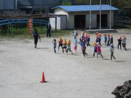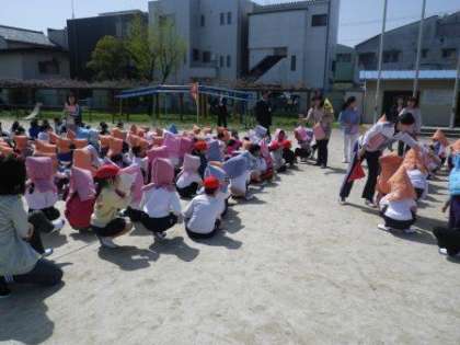 4月15日(金)、大地震の想定のもと、第1回避難訓練を行いました。避難の放送が入ると、子どもたちは担任の先生の指示をよく聞いて、しゃべらずに避難することができました。