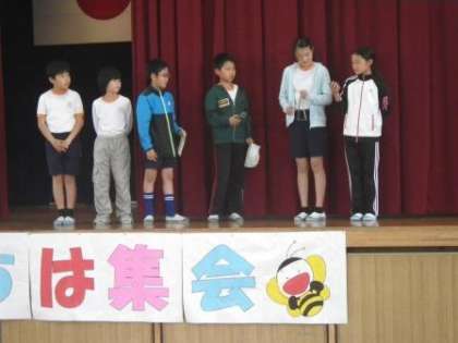 4月27日(水)、こんにちは集会では、1年生に楽しんでもらうために全員で準備をしてきました。2〜3年生は歌のプレゼント、4年生はプレゼント(首飾り)作り、5年生は花のアーチ作り、6年生はこんにちは集会の企画・運営をしてくれました。