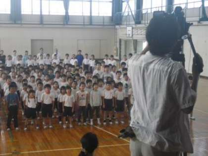 ひまわりネットワークが小学校を紹介する番組「ぼくらの学び舎」の取材が、7月11日(月)にありました。この日は朝から3名の方が来校し、2台のカメラを使って、伊保小学校の様子を撮影しました。1・2年生の野菜収穫や3年生の里山探検の様子、4年生以上の伝統芸能の活動など、本校の特色ある活動を取材していかれました。10数分の番組に編集され、10月ごろに毎日放送されるそうです。詳しい放送日程が明らかになったところで、またお知らせします。お楽しみに。