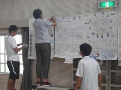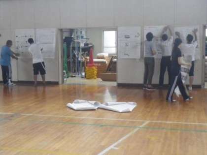 明日、9月6日(火)から、「夏休みの作品展」を行います。6日(火)の朝、子どもたちが創意工夫作品を体育館に運び入れますので、だいたい9時には展示作業が終了しているはずです。9時以降からご覧いただくことができると思います。展示する作品は、創意工夫作品と科学研究作品が中心です。体育館や各教室の廊下、ワークスペースなどに展示してありますので、お時間がある時にぜひご覧ください。9日(金)の学校公開日の午前中まで展示しています。今日、5日(月)は、児童の下校後、先生たちで作品の掲示や机の準備などを行いました。ご来校をお待ちしています。