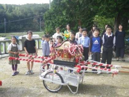 10月8日(土)からの三連休は、伊保小学校区で四つの神社のお祭りに参列しました。前の週にあった神社も含めて、合計五か所でお参りをさせていただきました。どの地域でも伊保小学校の児童が巫女舞や地域に伝わる伝統芸能、子ども御輿の担ぎ手などで活躍していました。一般に五穀豊穣を感謝し、地域の安全を神に願う目的で行われる秋の例大祭ですが、参加される地域の皆様から「子どもたちは地域の宝物であり、子どもたちの幸せも神様にお願いする」というお話をたくさんいただきました。本当にありがたいことだと感じました。そのような地域に恩返しできる子どもたちを育てていきたいと思います。今後ともご理解とご協力をお願いします。