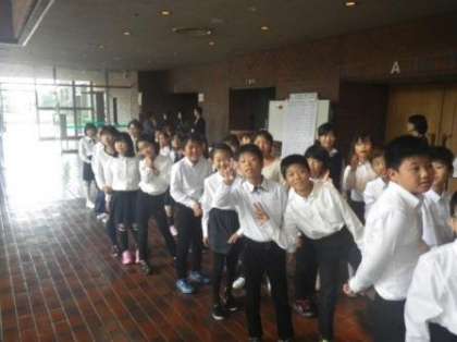 今日、4年生が豊田市民文化会館で行われた豊田市小中特別支援学校音楽大会に出場しました。演奏順4番目で出場した4年生38名は、「あすという日が」を練習通りに見事に歌い上げました。学校での練習で音楽指導者の福田先生から、「よそ行きの声で歌いなさい」という指示がありましたが、今日はまさに「よそ行きの美しい声」でソプラノとアルトの声が、それぞれ一つにそろって響いていました。観客席で福田先生と一緒に聞いていた私も、鳥肌が立ち、目頭が熱くなりました。素晴らしい合唱をありがとう。4年生のみんな、そして指導してくださった先生たち。ご多用な中、会場までたくさんの保護者の皆様も駆けつけてくださいました。ありがとうございました。(演奏中は撮影禁止のため、舞台正面の写真がなくて残念)