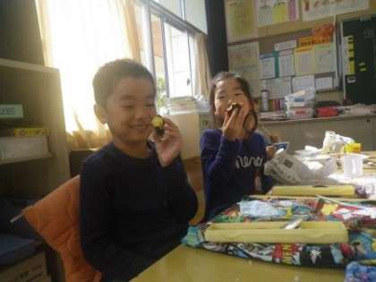 今週は「サツマイモ週間」??でした。月曜日に収穫したサツマイモを、今日は東保見町の「焼き芋名人」の皆さんが、美味しい焼き芋にしてくださいました。子どもたちは給食の時間に「秋の味覚」を楽しみました。また、5年生の児童は、近くにある伊保こども園の園児と芋掘りで交流しました。今週、子どもたちがほんの少しですがサツマイモを持って帰ります(帰りました)。すぐに食べたいところですが、少し待ってください。サツマイモは収穫してから2〜3週間置いてからの方が甘みが強くなると言われます。「追熟」と言って、デンプンが糖分に変わる期間を待つことが美味しく食べるコツのようです。甘さを楽しみたい方は、少し待つのが良いかと思います。参考にしてください。