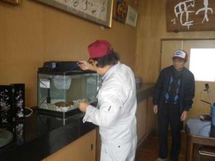 校長室に水槽を設置しました(伊保川に棲む魚を泳がせています)