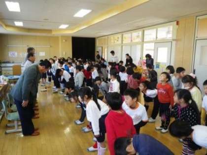 今日は1、2年生が4人の「野菜名人さん」をお招きして、「野菜名人さんに感謝する会」を開きました。4月からの間、夏野菜の植え付けや収穫、さつまいもの苗植えや芋掘りなど、いろいろとお世話になった「野菜名人さん」に、1年生は歌と手紙を、2年生は鍵盤ハーモニカをはじめとする楽器の演奏をプレゼントしました。また、2年生が作ったさつまいもの茶巾絞りをみんなで味わいました。「野菜名人さん」たちも笑顔で、とても喜んでくださいました。「野菜名人さん」は、来年もたくさんの作物が実るように、つい先日、学校の畑を柔らかく耕し、肥料を施してくださいました。いつも、本当にありがとうございます。