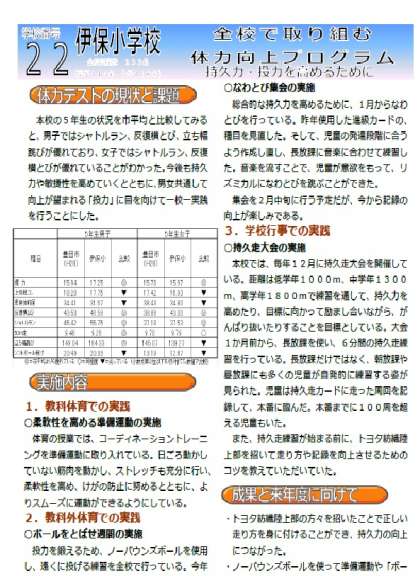 体力向上に向けた「1校1実践」の内容や成果、課題等について、ホームページに掲載しました。→体力向上「1校1実践」