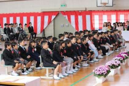 平成29年度の入学式・始業式を行いました。44名の新入生は約1時間の式の最中、たいへん立派に式に臨むことができました。2年生から6年生も進級認定の時は、大きな声で返事をすることができました。しかも、学年が上がるほど声が揃い、声量も大きくなっていったことが素晴らしかったです。今年も、「あいさつ」、「返事」、「思いやり」を大切に、「明日も行きたい、行かせたい、働きたい学校」をめざして学校運営を進めてまいります。保護者や地域の皆様の御協力と御支援をよろしくお願いいたします。