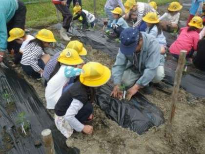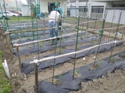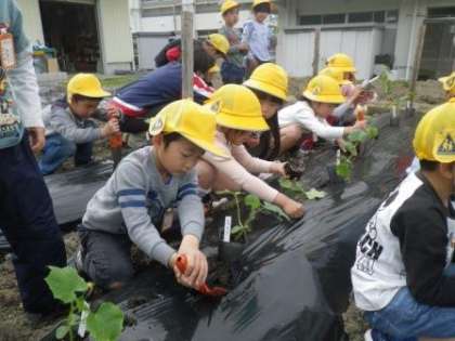 たくさん実るといいな!(1・2年生 夏野菜の苗植え)