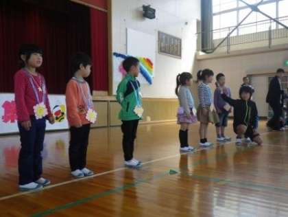 今日は2時間目に「こんにちは集会」を実施しました。これは4月に入学した1年生を歓迎する新入生歓迎会です。6年生が中心となり、2年生から5年生も何らかの役割を分担し、児童みんなで作り上げるお楽しみ会です。6年生にエスコートされ入場した1年生を、縦割りのフレンド班を中心にクイズやゲームをして楽しみながら、伊保小学校の仲間として迎え入れました。4年生が作ったペンダントを胸に1年生はとてもうれしそうでした。最後に1年生が、2年生から6年生までのお兄さんやお姉さんにお礼のあいさつをしました。あっという間に過ぎた40分間でした。