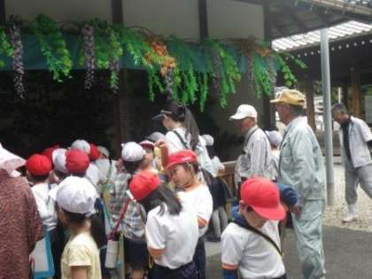 5月9日(火)の午前中、2年生と3年生が保見町にある射穂神社の「おためし」神事の様子を見学に行きました。これは熱田神宮で5月8日(月)に行われた豊年祭、「花のとう」を受けて行われるもので、この地域に伝わる由緒ある行事です。畠(はたけ)を模した畠所(はたどころ)と、田を模した田所(たどころ)の模型が飾られ、その出来具合によってその年の作柄を占うものです。子どもたちは、細かいところまで上手に作られた模型を見ながら、スケッチをしたり、メモをとったりしていました。地域のことを学ぶ活動を通して、「WE LOVE とよた」の気持ちを高めていきたいと思います。