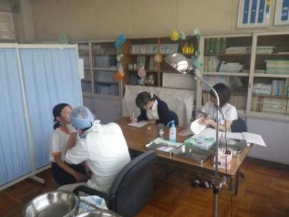 本日、6月1日(木)の午前中、学校歯科医の先生に来ていただいて保健室で歯科検診を行いました。全校児童の歯や口腔の様子を診ていただきました。後日、虫歯の有無や歯周病、歯並びなどについて個別にお知らせします。治療の必要があるような場合は、お早めに医療機関にかかってください。今月は13日(火)と14日(水)に内科検診も行います。お子さんの健康状態を正確に把握していただくために、学校での様々な検査や検診の結果をお役立てください。6月4日(日)は「6(む)」「4(し)」の語呂合わせから、「虫歯予防デー」になっています。この機会に虫歯や歯磨きなどについて、ご家庭でも話題にしてみてください。