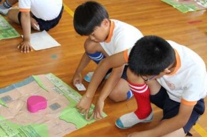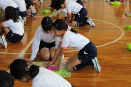 今日は午前中に消防署から署員さんとインストラクターの方あわせて4名をお招きして、5年生と6年生を対象に応急手当講習会を行いました。はじめに講義を受け、その後に実際にペアになって応急手当に取り組みました。今日はおもに心肺停止の危機が迫った人に対して、心臓マッサージやAEDを用いて、心肺蘇生を行う実習でした。このような場面に出会わなければよいのですが、突然、出会ってしまった時に、応急手当の知識をもっている人が一人でも多くいた方が救われる命も多くなります。小学校の高学年や中学生なども身につけておくべき知識・技術だと考えます。みんな真剣に取り組むことができました。