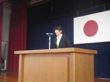 今日は全校集会から始まりました(「姿勢強調週間」スタート)