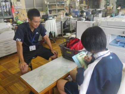 中学生の職場体験学習を受け入れています(猿投中2年女子生徒が体験中)