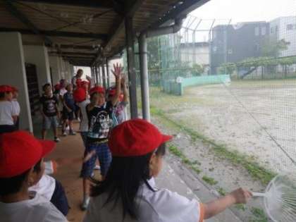 梅雨だというのに、ずっと雨が降らない日が続きました。今日は、これまでの分を取り返すほどの大雨です。極端な天候で困ります。大変な風雨の中、それでも子どもたちは元気に登校しました。今日と明日の2日間、ものづくりサポートセンターの皆さんのご指導で、1・2年生がものづくり教育プログラムに取り組みます。今年はシャボン玉づくりに挑戦します。今日は雨天のため、体育館でシャボン玉を楽しみました。人が入れるほどの大きなシャボン玉や、数多くのシャボン玉、なかなか消えないシャボン玉など、子どもたちの大歓声が体育館内に響きました。明日も行われます。