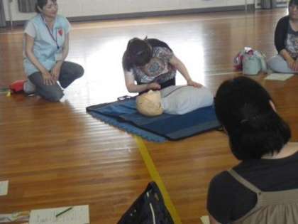 心肺蘇生法を真剣に学んでくださいました(PTA救急救命法講習会)