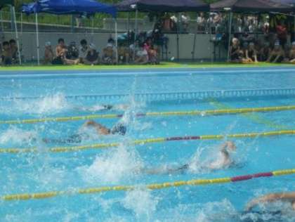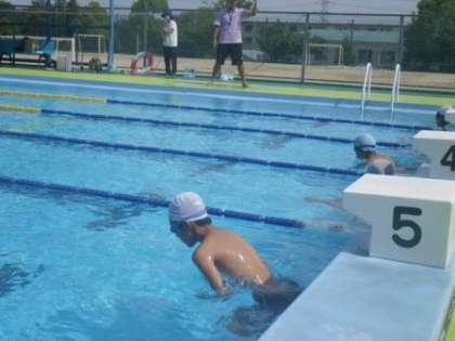好天の下、力いっぱい泳ぎました(1ブロック水泳大会)