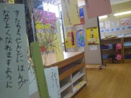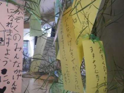 今日は「七夕(たなばた)」です(低学年は笹に願い事をつるしました)