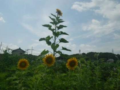学校園で見つけた「のっぽのひまわり」(なぜ、君だけ背が高いの?)