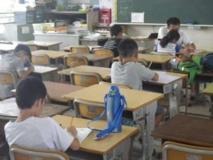 7月24日(月)、今日の学習サポートデーの様子です。午前8時30分からすべての教室で学習がスタートしました。扇風機がフル稼働する中、わからないことを先生に積極的に質問する姿が、多く見られました。写真は、6年生、5年生、4年生の様子です。