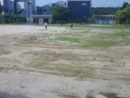 運動場をきれいにしてくださいました(豊田の若い先生方に感謝!)