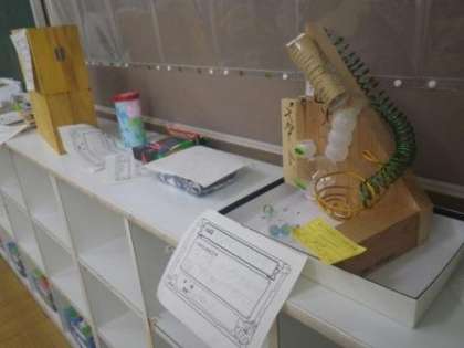 夏休み中も誰もいない校内を、午前と午後にそれぞれ一回りするようにしています。全校出校日の後は、廊下や教室に創意工夫作品などが並べられているので、ついつい足を止めて、見入ってしまいます。子どもだけの手ではとてもできないような作品もありますが、なかには、無造作に貼られたセロハンテープに小さな指紋がつき、努力の跡が見られる作品も数多くあります。それぞれの作品に夏休みの足跡が感じられます。9月4日(月)と、9月5日(火)の午前中に体育館やそれぞれの教室の廊下やワークスペースで、夏休み作品展を行います。ぜひ、カメラ片手にご来校ください。