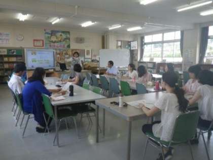 夏休みもあと1週間となりました。今日は午前中に職員が集まって、小学校外国語活動及び外国語科、新しい道徳科、いじめ防止の取組の3点において校内勉強会を行いました。午後は、市内各会場で教科領域ごとに分かれて、最新の指導法の研究会が開かれ、市内の小中学校の先生が研修をしました。本校の先生もほぼ全員が参加しました。