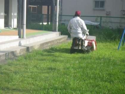 昨日、伊保川生き物観察の打合せに来ていただいた皆さんに、校内の雑草が勢いよく伸びて困っていることをお伝えしたところ、早速、今日の午後に保全会の代表の方が、学校にはない大型の草刈り機で雑草がひどく生い茂った部分を刈り込んでくださいました。9月4日(月)の親子奉仕活動までに、保全会のメンバーの方で、刈払機などでもう一度、作業をしてくださるそうです。4日の日には、従来の草取りの他に、刈られた草を集める作業を、児童や保護者の皆さんにお手伝いいただこうと思っています。皆さんのご協力のおかげで、きれいな学校になっていきます。