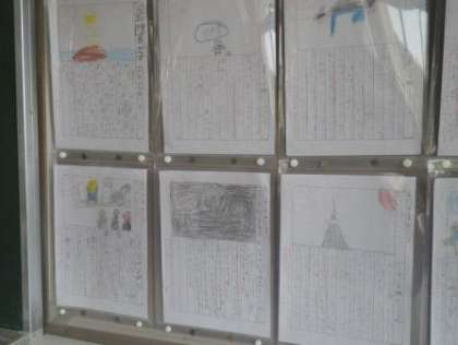 夏休みが今日で終わります。出校日の時に提出した絵日記が、掲示されている教室もあります。明日から、校長先生に夏休みの思い出をくわしく話してくださいね。明日はみんな元気な顔を見せてください。朝から大きな声であいさつしましょう。明日はいつもより多くの大人が、門の前で待っているはずですよ。